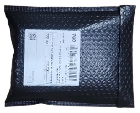 במקרים של מוצרים קטנים ולא שבירים, מעטפת אלומיניום שחורה ללא מיתוג עם מדבקת כתובת: